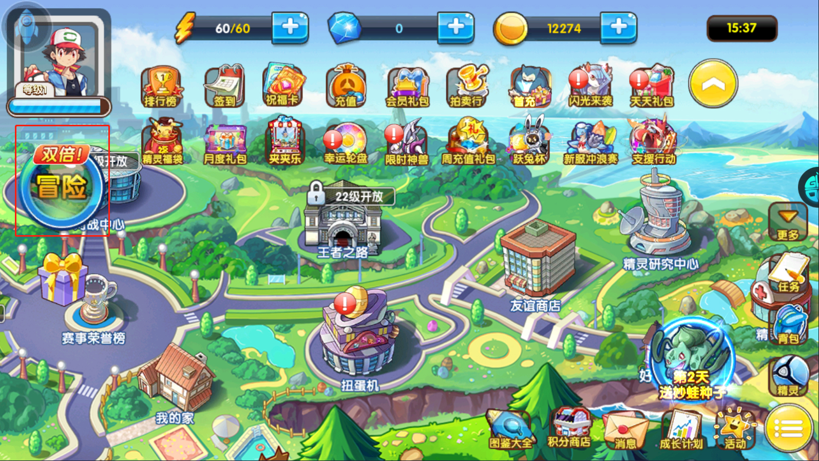 1、点击精灵宝贝手游最新版,主页面的【冒险】