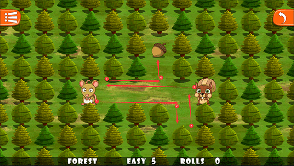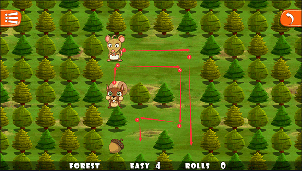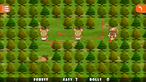 第四关:老鼠右-下,松鼠上-右-下-左-下,即可三星。