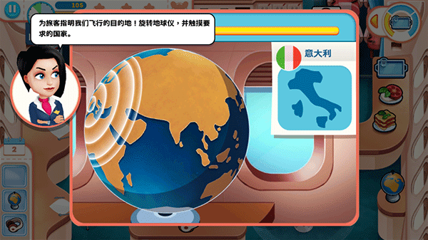9、在游戏中,还有许多迷你游戏可以玩,这里为旅客指明我们飞行的目的地!旋转地球仪,并触摸要求的国家即可。