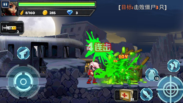 3、众多的关卡等你来挑战,还有不同种类的丧尸等你来消灭。带你体验杀丧尸的快感。