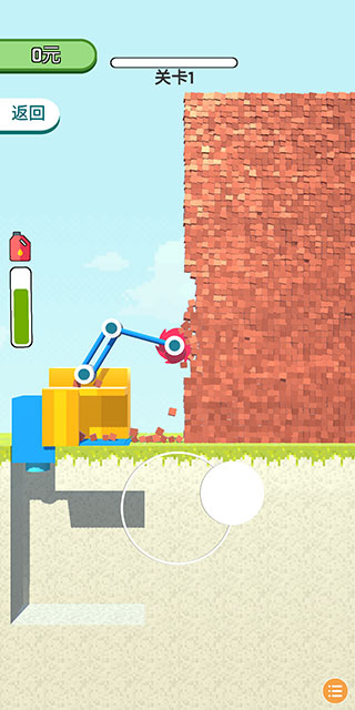 2、通过拖动下方的虚拟轮盘来控制拆迁机器拆除右侧建筑。