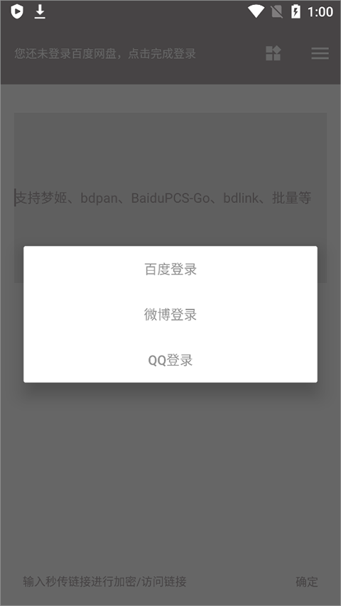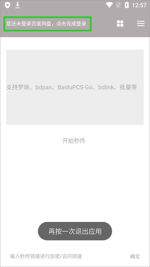 用户想要登录狐悠秒链app首先要登录百度网盘app,因为用户打开狐悠秒链app后就会看到软件会检测到用户没有登录百度网盘