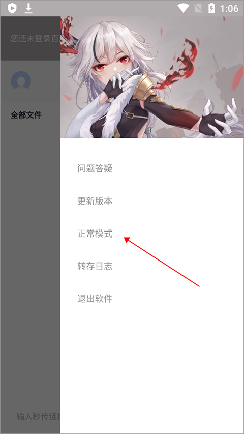 此时用户可以点击上图页面右上角的扩展菜单,在右侧弹出的菜单选项中点击【正常模式】,以正常模式登录应用
