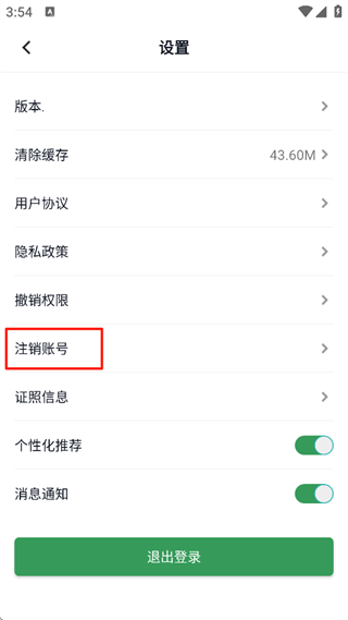3、点击【注销账号】