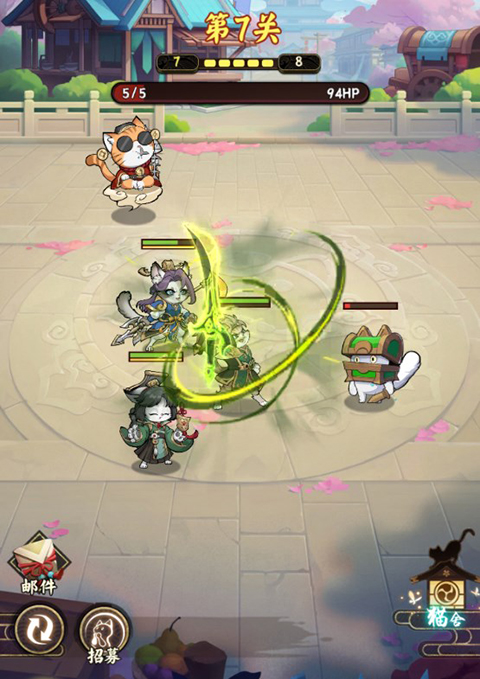 2、通过关卡会掉落各种猫盒宝箱,开启宝箱可以获取各种强力武将,武将也可以通过招募获取哦。