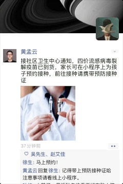 成员可将重要通知、政务党务、活动信息等发表到居民的朋友圈,并与居民评论互动。