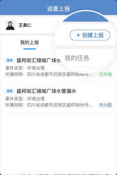 网格员可使用巡查上报,记录并汇报日常巡检情况;