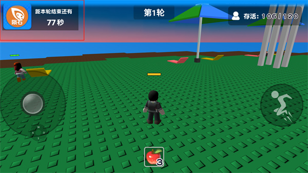 自然灾难模拟器游戏中玩家需要点击开始游戏进行游玩,玩家可以根据需求选择阵营或者随机进行分配,游戏中玩家可以通过滑动游戏左下角的摇杆来进行移动,通过点击游戏右边的跳跃按钮来进行跳跃,需要注意的是进入游戏后,游戏左上角会随机来临灾难,当灾难的倒计时结束,玩家还存活玩家将进入下一轮来进行生存,当玩家最终存活下来,游戏会根据玩家的游玩情况来方法奖励。