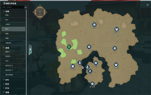 游戏内的地图功能多多利用,想找什么物资和怪物,直接点击左边对应的内容就好,地图上就会绿色高亮标出它的位置,过去找就好了。