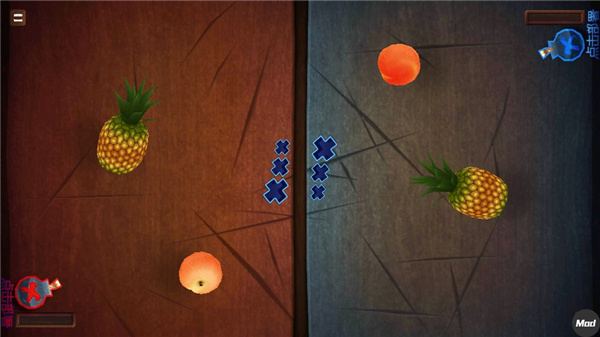 4、图标为苹果的Zen模式中,没有炸弹,只会不断出现水果,时间为1分半。在这一分半内谁因连击而切出的分数越高,谁就是胜利者。游戏不会因水果的掉落而失败。