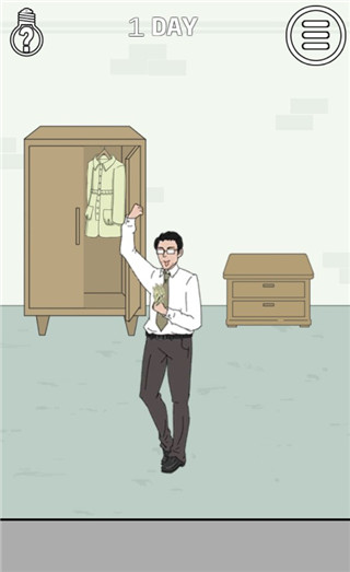 第一关:玩家只需要打开右边柜子的门,并点击悬挂的大衣,即可拿到私房钱,通关成功;