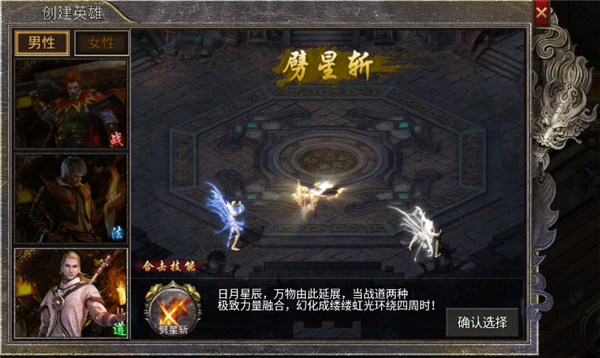 1、进入游戏,玩家需要先选择角色职业以及性别。