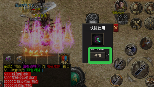 5、战斗后,可拾取掉落的装备,点击使用一键穿戴上。
