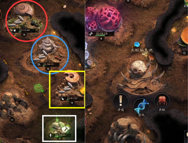 ⑧合理利用兵蚁栖息地,把低阶兵种进化为高阶兵种,避免兵种资源浪费;
