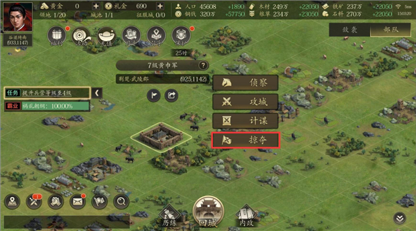 使用武曲星符和虎符3后带上10万左右弓箭兵点击攻占清理前排,再带7万左右轻骑兵点击掠夺清理后排,最后带5000-1万辎重车去掠夺兵力被清空的十级城池(可以一波派出9队左右去掠夺即可快速获得大量的资源)。如果投石充裕的玩家可以准备2万投石速度控制在42—44区间,直接对十级的黄巾军和汉灵帝城进行攻占,等第一波清完城中所有兵力后派辎重车队伍进行掠夺。掠夺可获得大量铜钱,在城池中用铜钱可以贸易换取大量资源。