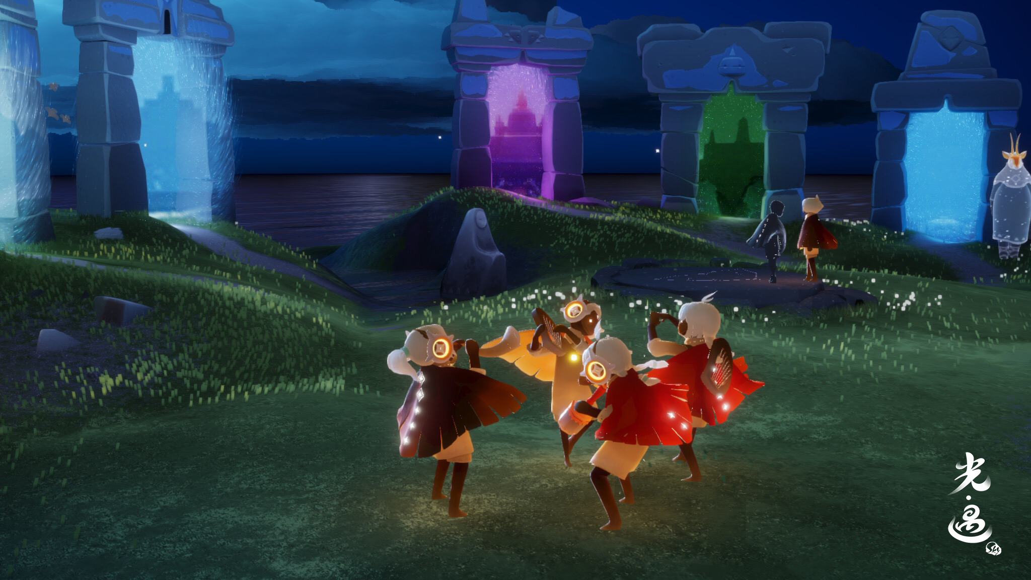 旅人从晨岛出发,开启天空王国的冒险之旅。途中无需指引与提示,旅人可以在场景中自由探索、遍历美景、寻找隐藏的彩蛋,并借助先祖的力量打开星之门,前往下一个地图。