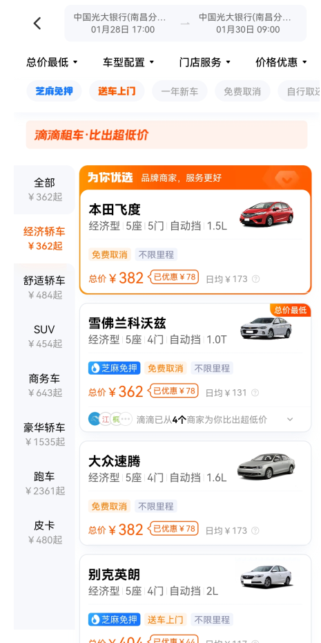 5、汽车租赁最初的滴滴共享汽车租赁,为用户提供各种租赁期,例如每小时、每天和每周的租赁。您可以在网上选择车辆类型,一键预订即可退货,方便快捷,真正做到了拿车就退货。