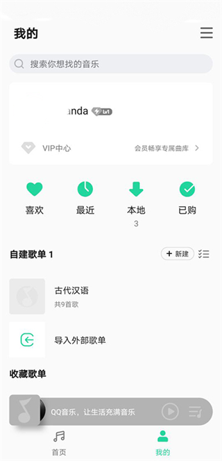 1、首先登录你的账号,在我的界面点击“导入外部歌曲”