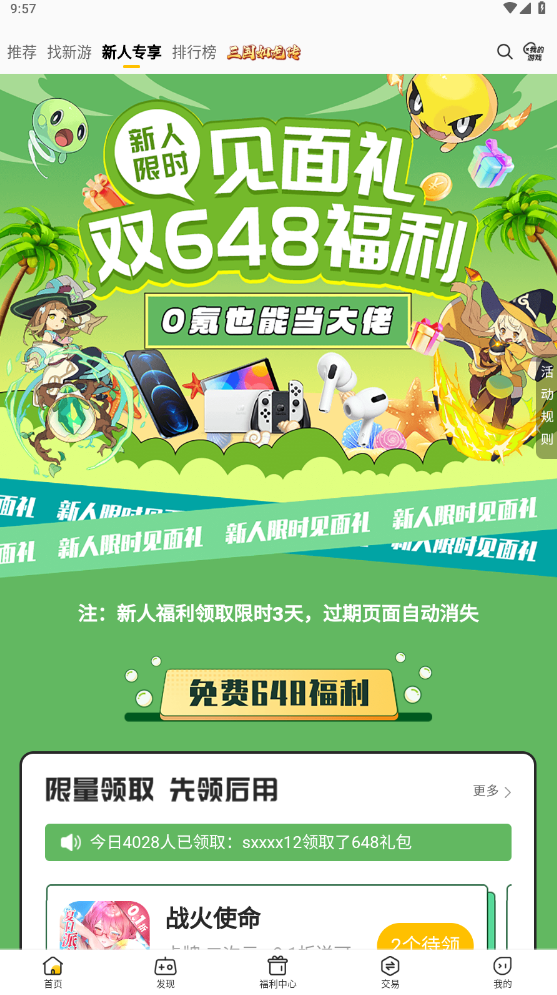 PS:新用户注册还可以领取额外的专属648礼包!