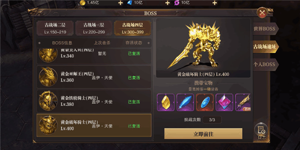 击杀古战场遗迹boos,个人boos已经钻石商城购买哦。
