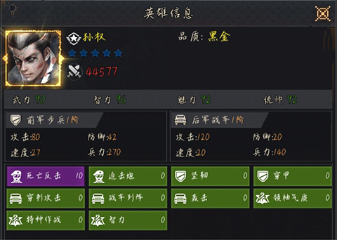 2、每提升1级【死亡反击】,对武将或全才伤害+1%。