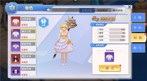 激活时装可以直接提升角色战力。