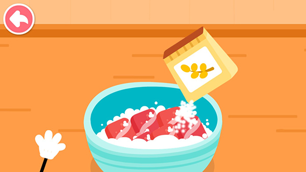 1、在进入游戏后,就可以让宝宝选择自己喜欢的厨具开始美食制作,每个厨具制作的美食都不一样哦!