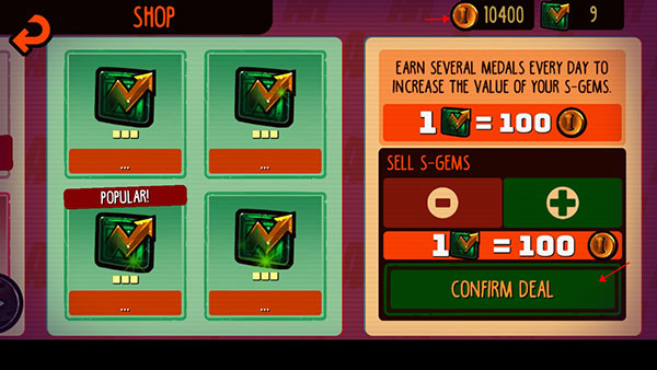 4、点击进入商店,划到最边上,看到有加减符号,点击加号可以随便加,然后点击下面的确认,就可以看到金币变多了,一旦有了钻石后更换金币钻石会变少的,所以在没有获得钻石时,可以无限更换。
