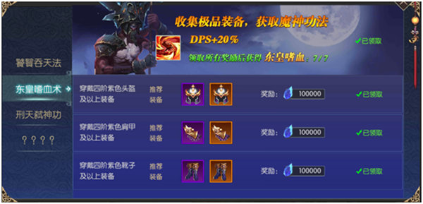 二、【东皇嗜血术】:领取了【饕餮吞天法】技能后,才显示该技能的标签页
