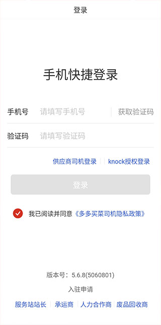 2、输入入驻好的手机号和验证码登录。