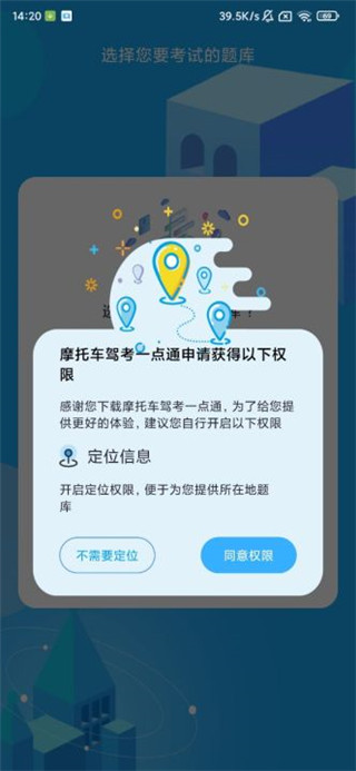 1、大家下载安装打开之后,需要先选择位置,科一不提供定位权限;