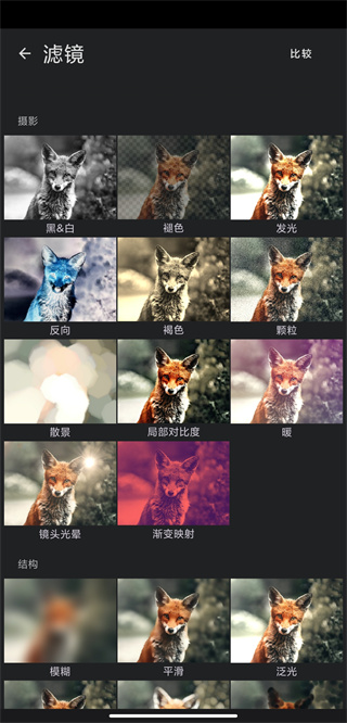 4、在此页面选择一个滤镜,即可设置出发光效果,比如我们选择镜头光晕,点击即可应用。