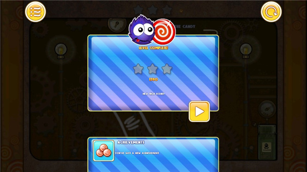 1、抓住糖果游戏中,玩家需要根据关卡地形和环境,帮助小怪物拿到它喜爱的糖。