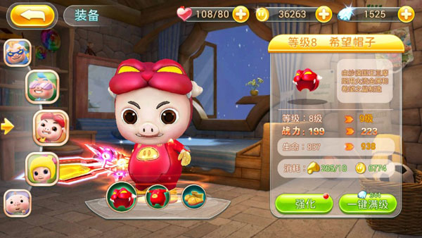 真正的3D画面设计,完美移植动画片猪猪侠中的场景、人物、变身等细节,画面使人惊艳又不失精细,UI布局贴合人体工程学。