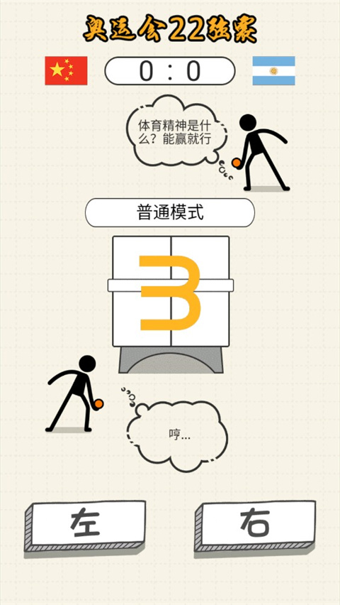 3、然后游戏开始,乒乓球王者游戏的操作只有左右两个按钮,看对手打过来的乒乓球落在左面案板还是右面案板,落在左面就马上按左按钮,落在右面则马上按右按钮;