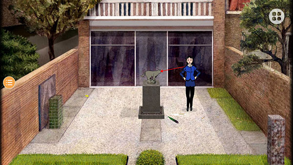 6、最后点击喷泉上的【猫】,女人把猫抱到围墙上,本章节通关。