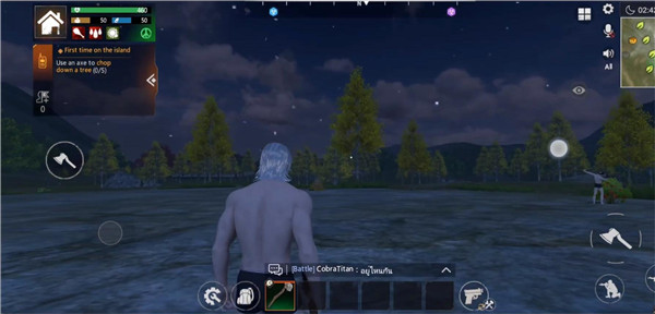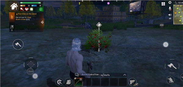 3、靠近各种物体就会显示出可采集的图标,包括树木、灌木、石头等大量选择,几乎所有物体都可以交互。