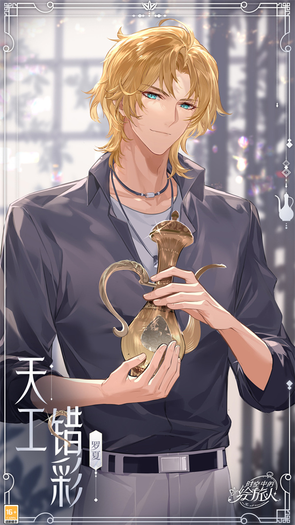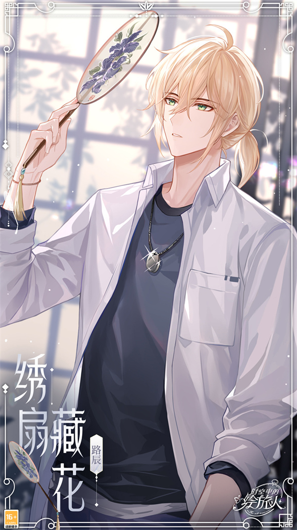 多时空恋爱冒险手游《时空中的绘旅人》男主角之一,年龄20岁,身高181cm,双鱼座,生日3月19日,由赵路(中),花慎之介(日)配音。在现代世界的身份是圣塞西尔学院天文系的转校生。在平行世界叶塞大陆的身份是法师塔“九席”高阶法师。在乐园世界的身份是乐园主人。在灵界的身份是森之灵。