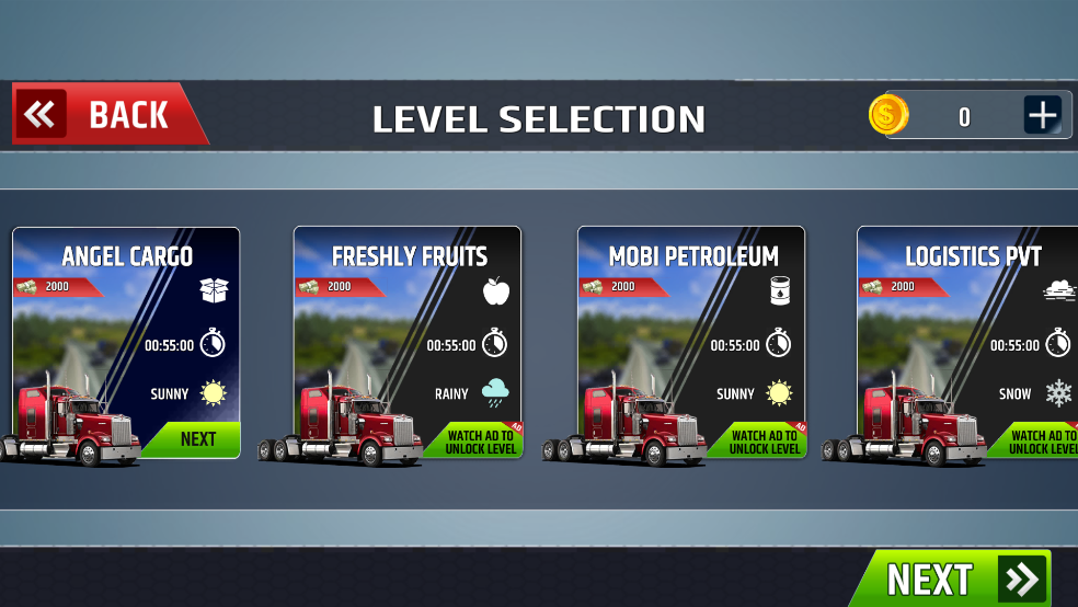 一开始只有基础的车辆,通过运输获得金币可以购买性能更加强大的车辆