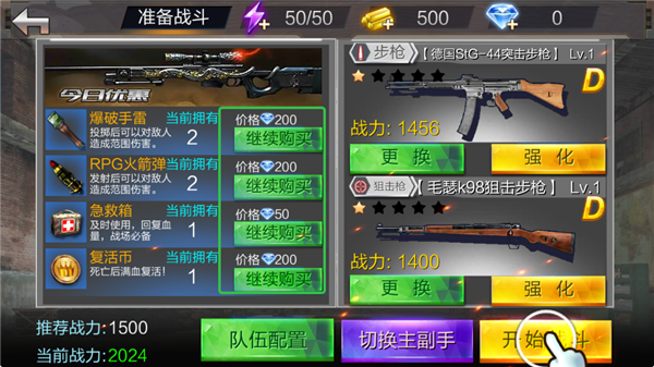 绝地枪王手游内拥有各种丰富的枪支,如步枪、霰弹枪、机关枪、机关枪等,还有如手榴弹、火箭筒等战斗道具,玩家还可以解锁或购买战友,提供战力支持。