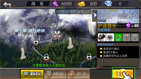 战役模式以剧情发展为走向,在这里你将接受不同的任务,完成任务多规定的条件就能获取三星评价。