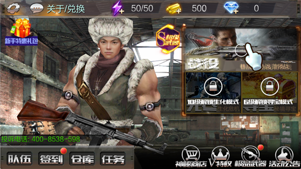 在此玩法,你将接受车轮战的攻势下,挑战一波又一波出现的日军、土匪和汉奸,并还有强大的boss在后面等你,你需要强大自己,装备好武器和装备,并且还能雇佣佣兵团。