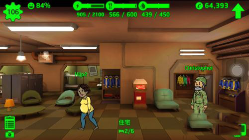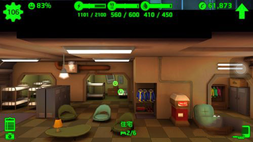 在目前游戏里面,避难所的建造是需要我们消费瓶盖(其实等于金钱),而随着我们相同的建筑物越来越多时每一个所需的费用会逐步升高。而且在游戏里面有一个值得注意的地方,那就是相同的建房间会合并成一个大的房间,一般是3个到顶成为一个巨大的房间,同时当建筑物合并时其作用会有所提升(如住房会额外提供地方来给人居住。)