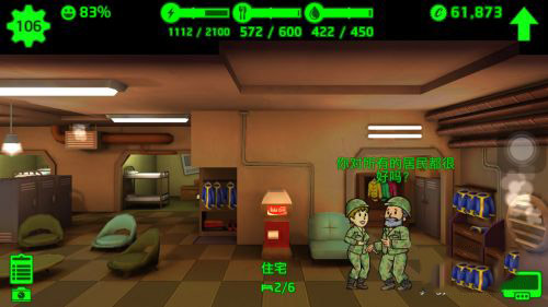 在目前游戏里面,我们一共有四个数值需要注意,分别是满意度,电力,食物,水。电力、食物、水这三个属于常规资源,这三种我们可以通过建设动力核心,午餐中心和水泵来不断供给(每隔一定时间就会得到一部分资源,但是需要我们收集才行),而满意度则是基于上面三个资源的基础再加上药物(也是通过建筑生产)支持情况下所得总的结果,而游戏之中要得到这些资源就需要让人在指定建筑物中不断的生产资源,从而保证到我们的资源得到供给,但是由于人口对于资源也会产生消耗,因此控制人口与资源就是我们一个很重要的内容了。