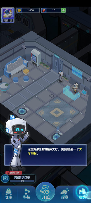 1、下载进入宇航员星空冒险游戏,你将作为一名星际冒险家建造你的太空基地;