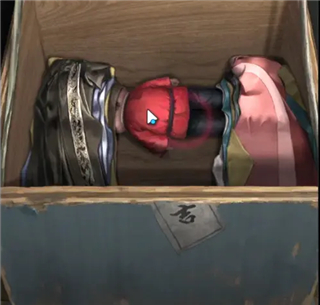 7、点带砍刀人旁边的箱子,完成一笔画打开箱子得到小人挂件。