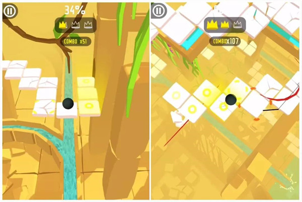 2、《跳舞的球》更是一款音游了,因为减少了部分难度,所以要相应增加一些来维持平衡,游戏中增加的是对拐点准确度的判断还有音乐也很美妙。