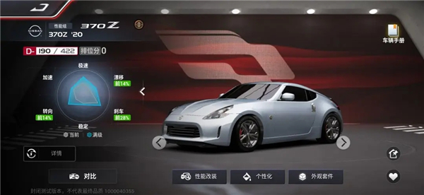 在车辆选择方面,各位车手们可以优先选择漂移属性较高的车辆出战,毕竟对于“白云山”赛道来说:漂移属性的高低直接影响了在跑这条赛道时的漂移降速和手感。漂移指数越高的赛车,在漂移时速度损失会越低,过弯速度会越快,各位车手会觉得漂移时手感更为顺滑,拉车头很流畅。而漂移指数越低,则漂移降速越大,过弯越慢,让人感觉手感“沉重”。