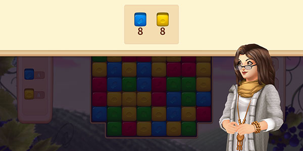 2、点击2个或2个以上相同颜色的方块即可进行【消除收集】,消除之后,左侧的目标也会减少相应的数量。