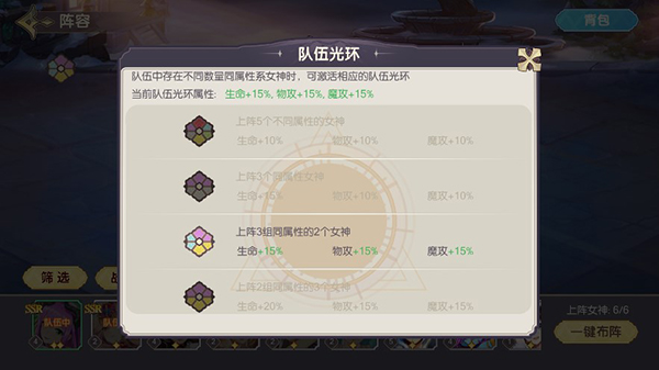 3、玩家通过上阵阵营英雄还能激活光环属性,大幅提高队伍属性战力。